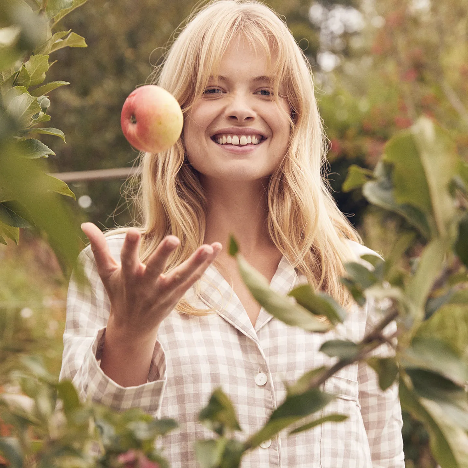 For a blissful night’s kip, snuggle into nostalgic neutrals with our Mushroom Gingham Linen Pajama Shirt, made from super soft 100% stonewashed linen. Made for slow weekend mornings and cozy nights in, our gingham linen sleepwear collection is completely natural and thermo-regulating, keeping you snug during winter and cool throughout the summer. This whimsical print and organic-toned color can be paired with our linen pajama trousers or shorts to complete the look. Our gingham sleepwear is an oversized, and more relaxed fit than our core range; we recommend sizing down if a more snug fit is desired.