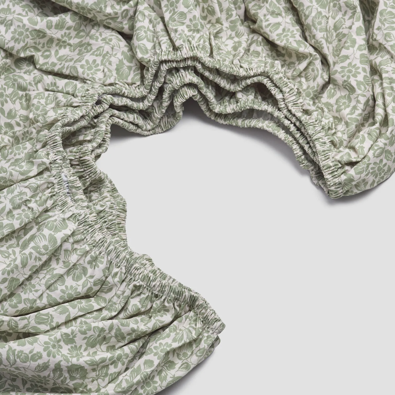 Meet our first floral cotton bedding collection, inspired by the romantic charm of English country houses. Working with The Design Library – the worlds largest collection of documentary fabrics, paintings, prints and patterns – we sourced an archival floral print and updated it for a modern setting, resulting in our new Meadow bedding range. Our Meadow Floral Printed Cotton Fitted Sheets are designed to be mixed and matched with our plain cotton colors, with our Pear Meadow Floral Printed Cotton Fitted Sheet pairing particularly well with Parchment and Cove Blue.