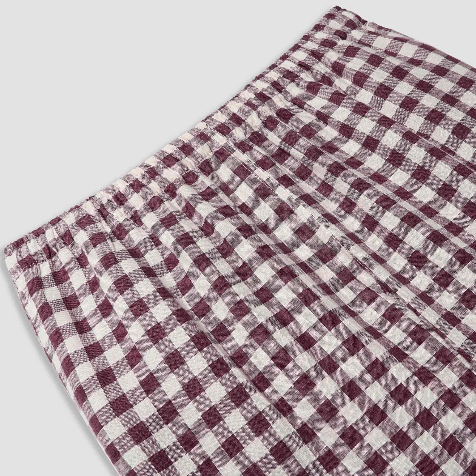 Made for relaxing at home and slow weekend mornings, our Berry Gingham Linen Pajama Pants are made from super soft 100% stonewashed linen. Linen keeps you cozy and warm in the winter and cool in the summer. This whimsical print and striking color can be paired with our matching pajama shirt, our plain linen camis or your favorite basics to complete the look. Our gingham sleepwear is an oversized, and more relaxed fit than our core range; we recommend sizing down if a more snug fit is desired.