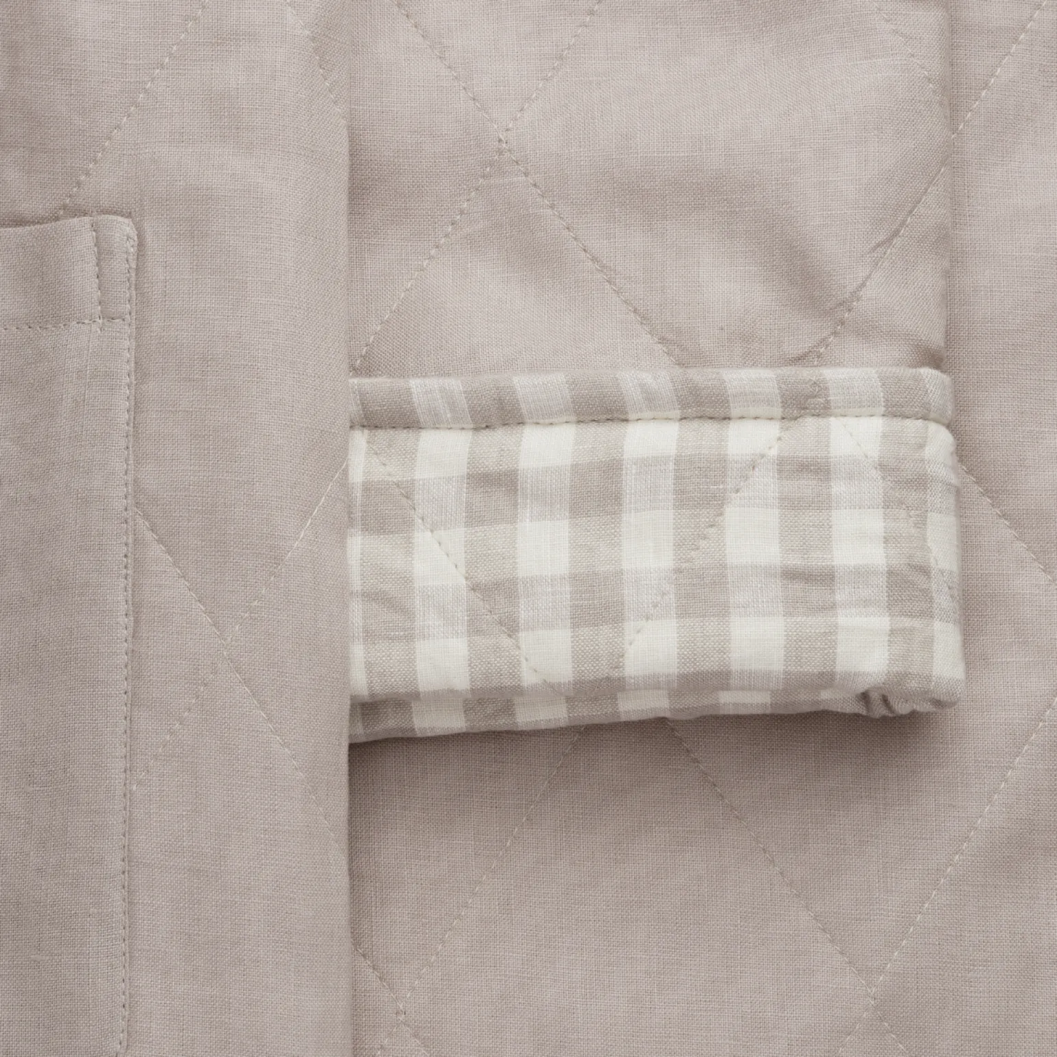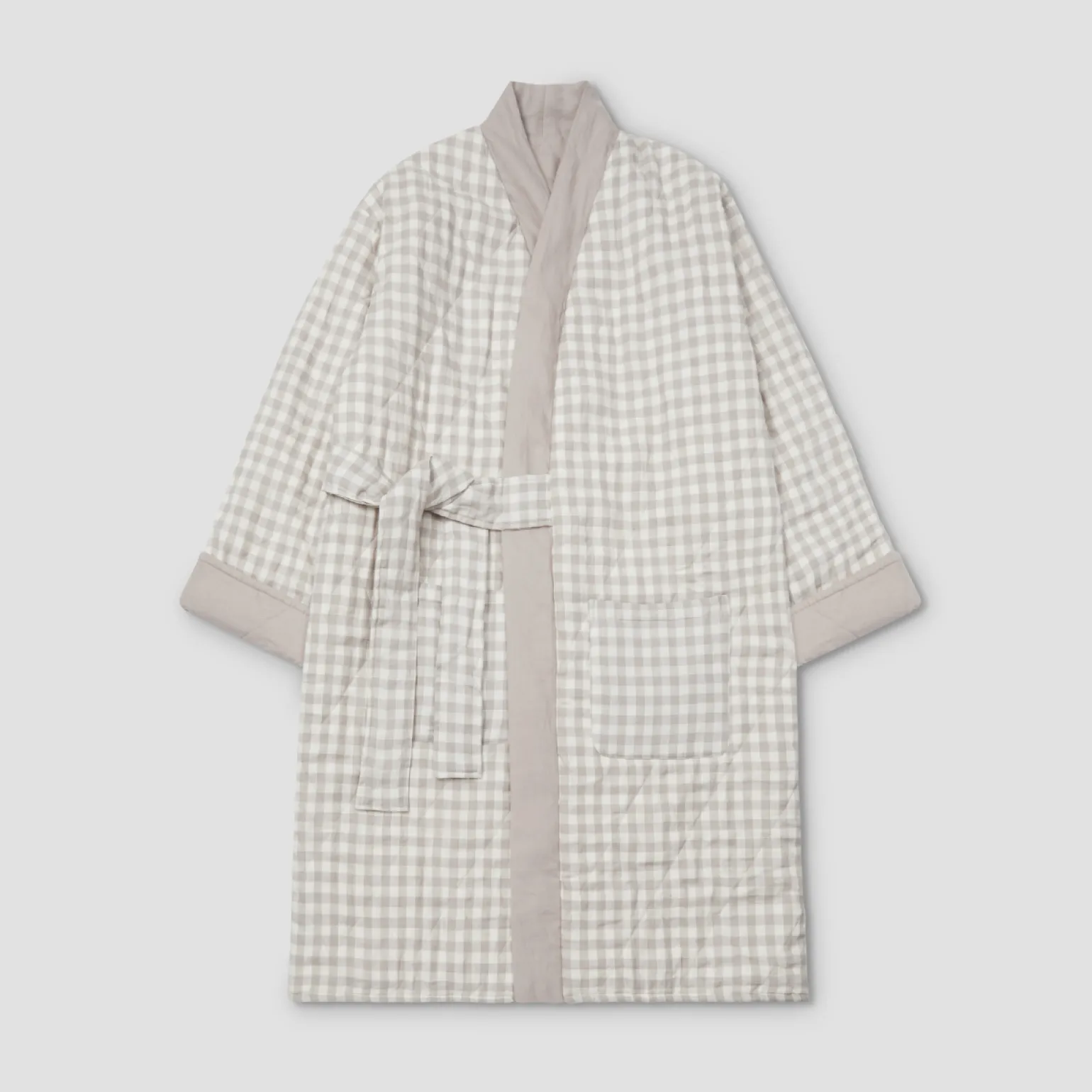 Our Mushroom Gingham Linen Housecoat is here to keep you cozy and warm, whether you’re making coffee on a chilly morning or snuggling up for the evening on the sofa. With its oversized style, reversible quilted design and handy pockets, this housecoat is sure to be your new loungewear staple.
