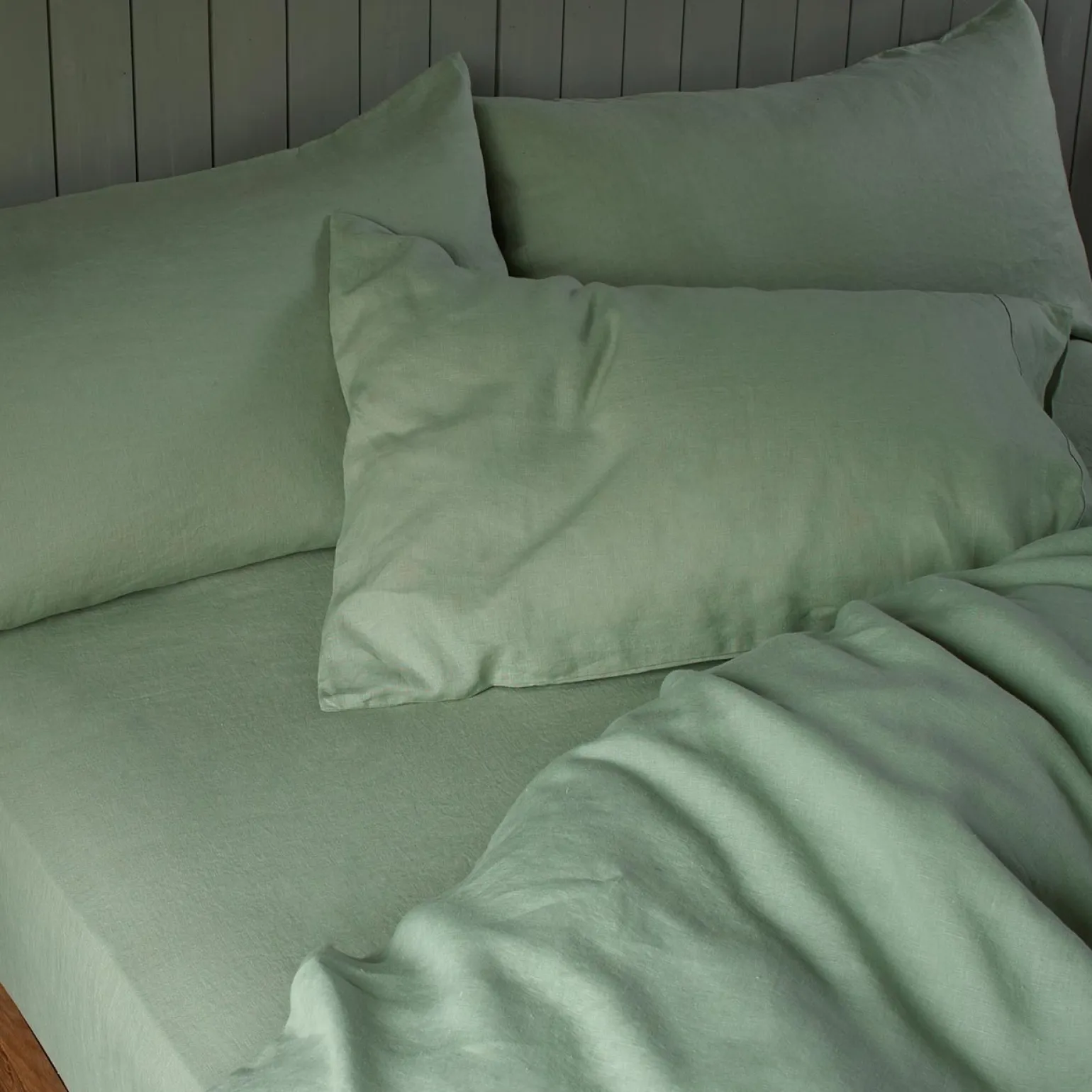Our Sage Green linen fitted sheet can be mixed and matched with any of our linen duvet covers or flat sheets to create a beautiful natural ensemble, suitable for master, guest and children’s bedrooms alike. Owing to its unique weave, linen is naturally thermoregulating and moisture-wicking, keeping you cool on hot summer nights and cozy in the winter. Our fitted sheets have elasticated edges all the way around and fit mattresses up to 16 inches deep.